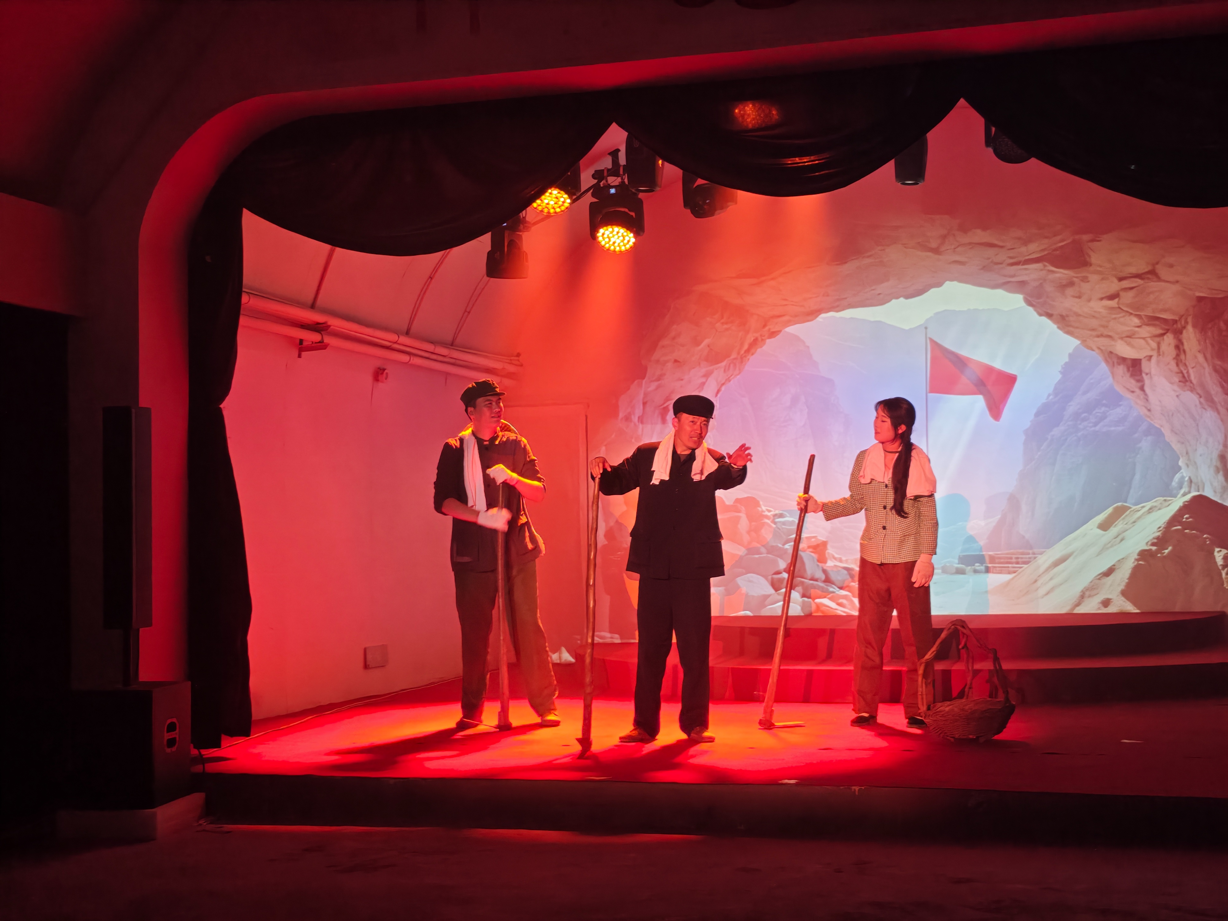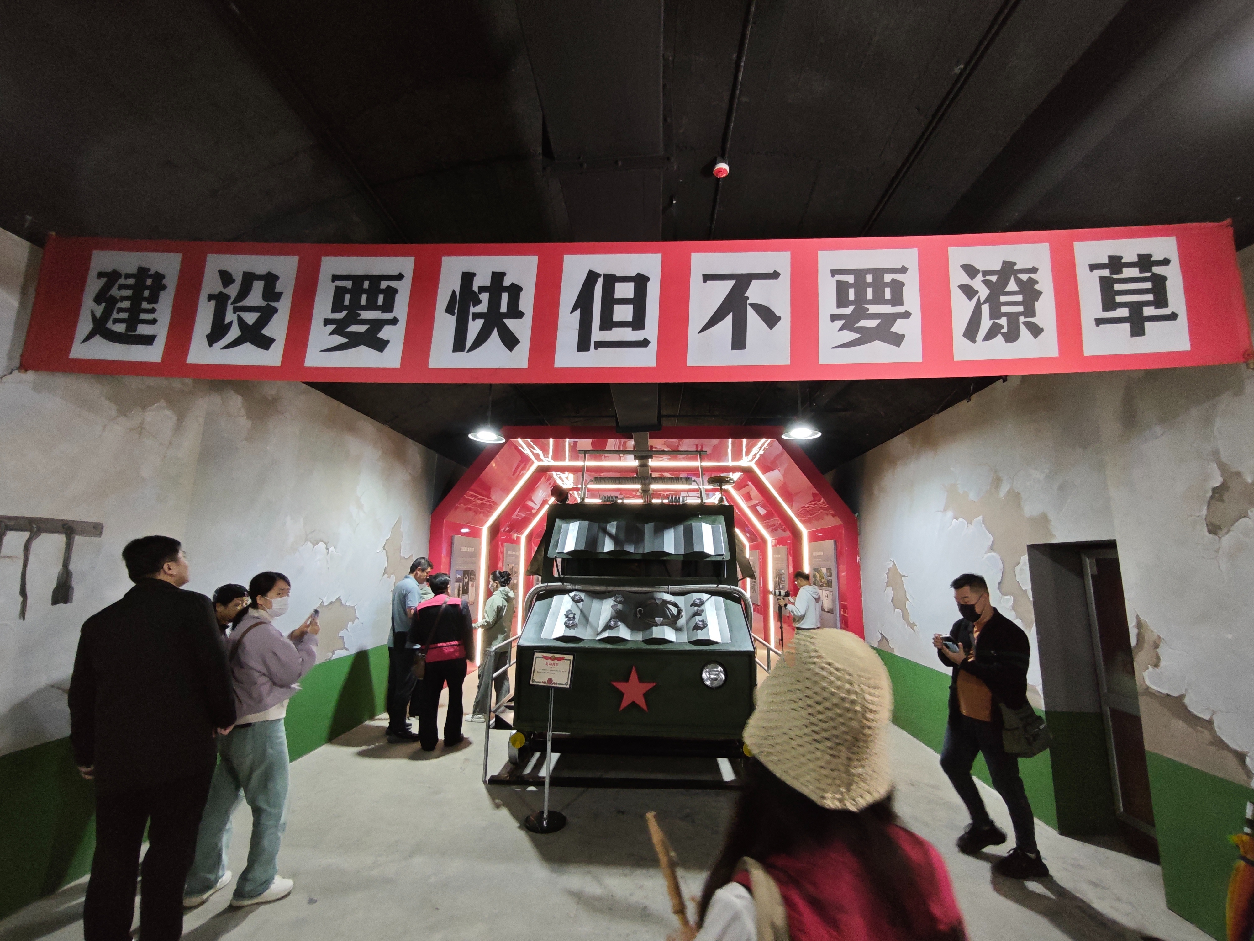 洞内探秘,沉浸演出唤醒多元记忆 踏入“铸盾•三线记忆馆”,昏暗的灯光营造出浓厚的历史氛围,珍贵文物、详实史料与逼真场景复原相得益彰,仿佛将人们带回到那个激情燃烧的岁月。随着激昂的广播声响起,一场沉浸式演出震撼开场。演员们身着上世纪80年代的服装,全情投入地再现小三线兵工厂的奋斗场景。让游客仿佛穿越时空,亲身感受到那个年代的火热激情。这场演出不仅为青少年爱国主义教育提供了生动实践平台,更让每一位游客对那段历史有了更深刻的认识和敬意。