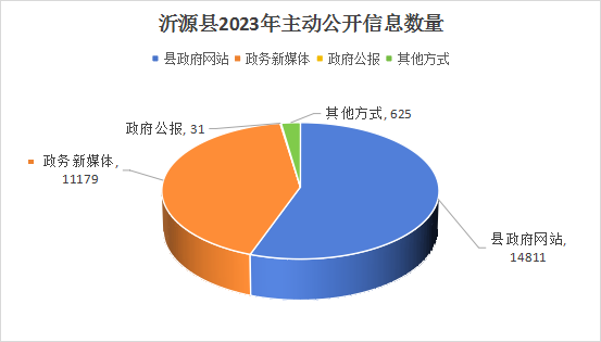 1.强化法定主动公开,丰富公开形式。围绕促进经济发展量质齐升、激发市场主体活力、解决群众急难愁盼问题等强化信息公开,继续深化重点领域信息公开,加强稳增长促就业、养老服务、生态环境保护、食品药品安全、教育医疗、财政资金等领域信息公开。2023年沂源县通过政府网站、《政府公报》、政务新媒体等渠道主动公开政府信息26646条,其中县政府网站公开14811条、政务新媒体公开11179条,政府公报公开31条,信息公示栏、报刊等其他方式公开625条,同比增长49.5%。