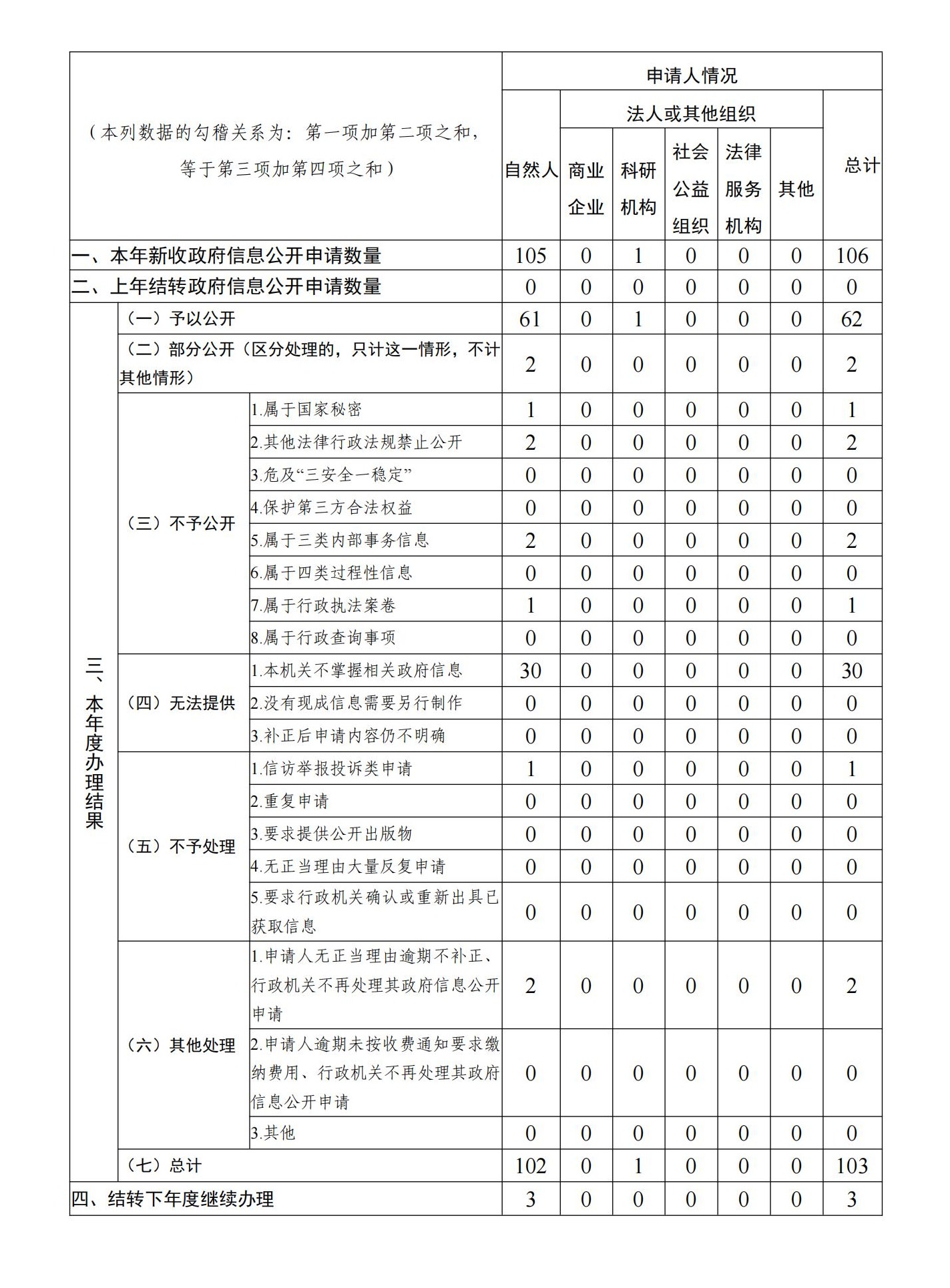 三、收到和处理政府信息公开申请情况