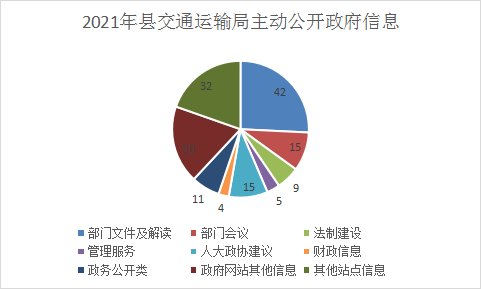 2021年,县交通运输局在县委、县政府的正确领导下,深入学习关于“以人民为中心推进新时代政务公开”的讲话精神, 认真贯彻落实《中华人民共和国政府信息公开条例》以及《关于全面推进政务公开工作的意见》文件要求,在基础的政务公开要求上拓宽思路,取得了较好的成绩。