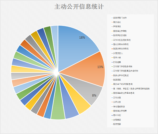 2021年,累计主动公开政府信息39条,其中,县政府部门文件7条;镇办会议5条;开展情况3条;政府开放日活动2条;工作计划及完成情况2条;提案办理总体情况1条;分管负责人1条;领导小组1条;机构设置1条;工作部门职责任务清单1条;工作部门职能配置及内设机构1条;政务公开专区展览1条;提案答复1条;镇办26个试点领域目录1条;镇(街道、开发区)政务公开事项标准目录1条;镇街道主动公开基本目录1条;工作方案1条;公示公告1条;法治建设报告1条;镇街道公开指南1条;培训计划1条;文稿解读1条;镇街道公开年报1条;政府预算1条,其他1条。