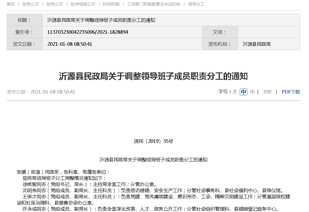 | 发文日期: | 2021-01-06 | 发布机构: | 沂源县民政局 |