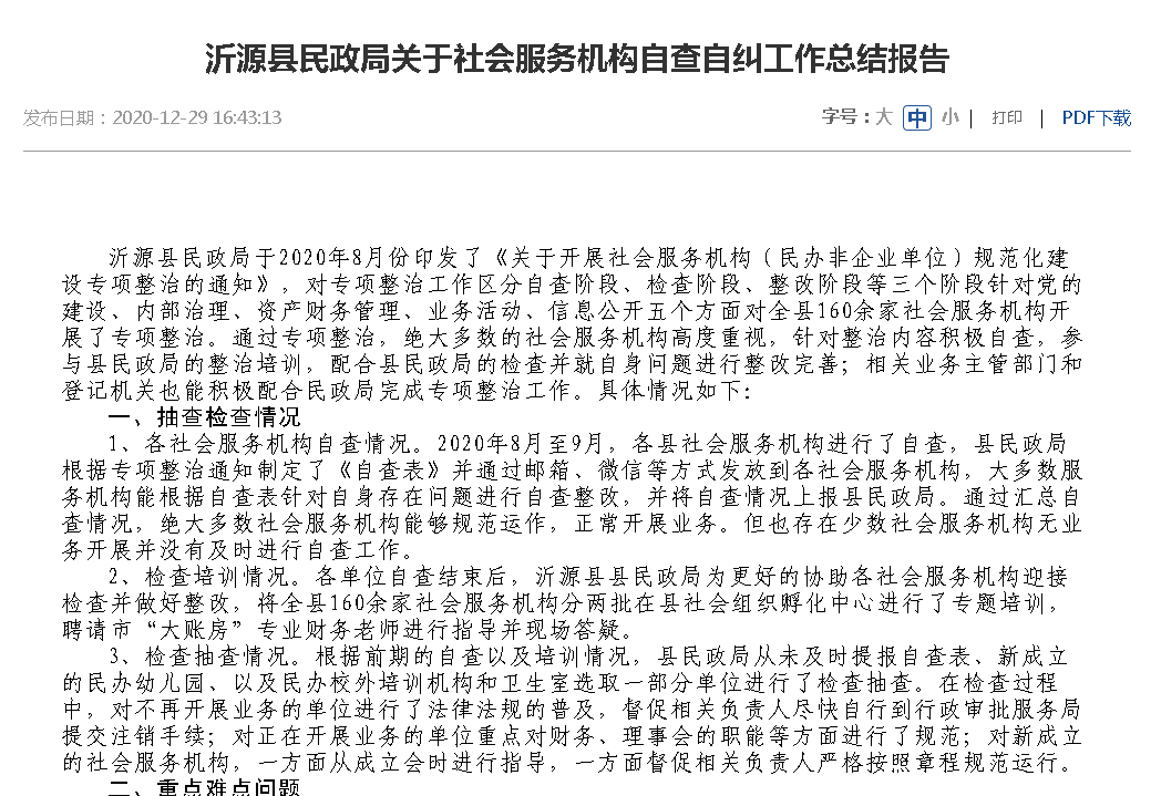 | 标题: | 沂源县民政局2020年政府信息公开工作年度报告 | ||