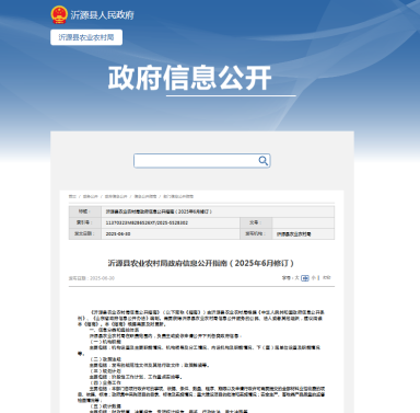 | 标题: | 沂源县农业农村局2025年度政府信息公开工作年度报告 | ||