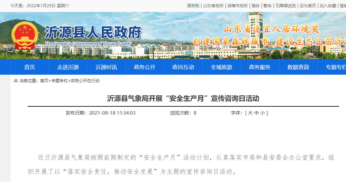 | 标题: | 沂源县气象局2021年政府信息公开工作年度报告 | ||