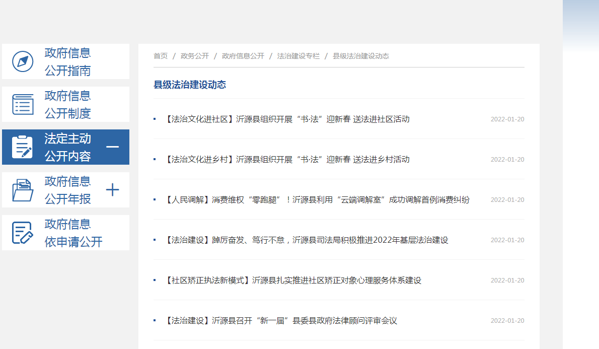 2021年,在县政府和大数据局的指导下,对政务公开目录、内容等进行健全完善,及时发布完善机构职能、领导分工、政府文件、部门文件、重点领域公开、执法结果等信息,确保应当公开的内容及时公开。建立“谁提供、谁发布、谁负责”的工作机制,要求对平台内容及时更新补充完善。对县政府要求和文件进行落实。县司法局抽调专门人员进行政务公开工作,及时对平台建设和信息发布进行对对接、反馈和督促,确保政务信息公开到位。