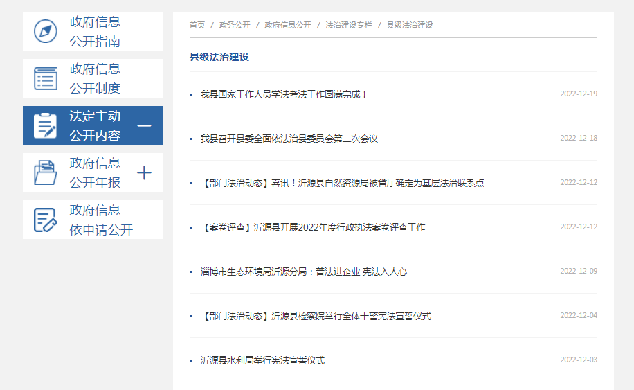 2022年,县司法局认真贯彻落实《国务院办公厅政府信息与政务公开办公室关于做好规章集中公开并动态更新工作的通知》等制度性规定,在政府网站主动公开政府信息393条,其中机构职能2条,政策法规类22条,重大决策预公开1条,政府会议类12条,规划计划类1条,建议提案类2条,财政信息5条,“双随机、一公开”类5条,管理和服务类11条,政务公开组织领导类3条,政府信息公开作推进1条,主动公开基本目录1条,基层政务公开事项标准目录2条,法治建设专栏309条,“政务公开在行动”11条。在公开信息的同时对符合要求的文件、会议进行解读,确保解读率,并且做到原文与解读相互关联。今年以来,通过“沂源司法”微信公众号发布信息579条、“沂源普法”抖音号发布信息46条。