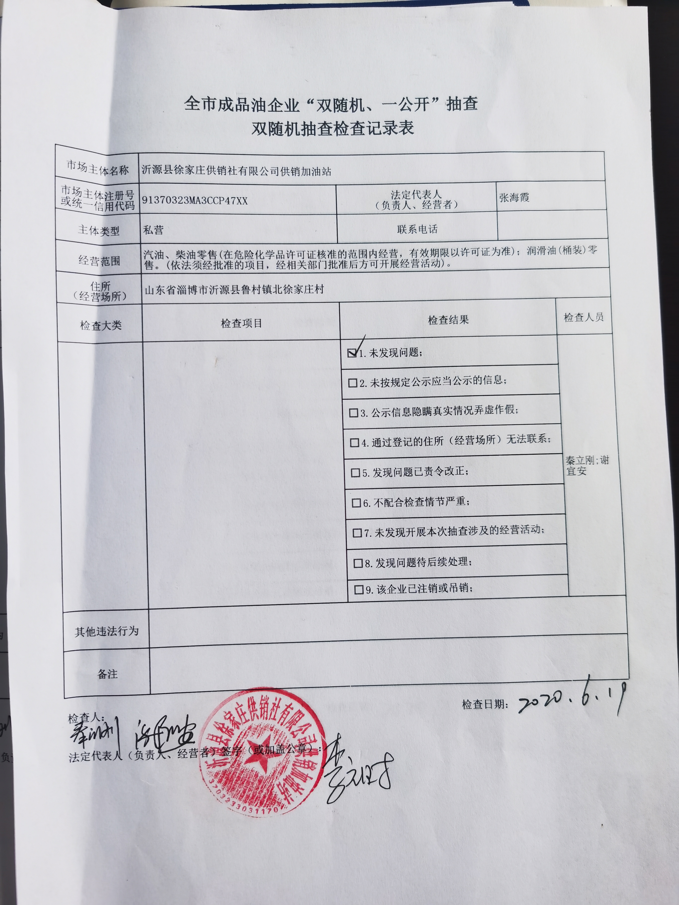 根据《关于开展成品油经营企业“双随机、一公开”联合抽查工作的通知》 (淄油管办字(2020) 5号)要求,县商务局于6月19日会同县市场监管局、县税务局等职能部门对我县徐家庄农机加油站、河南十字路加油站进行抽查工作。
