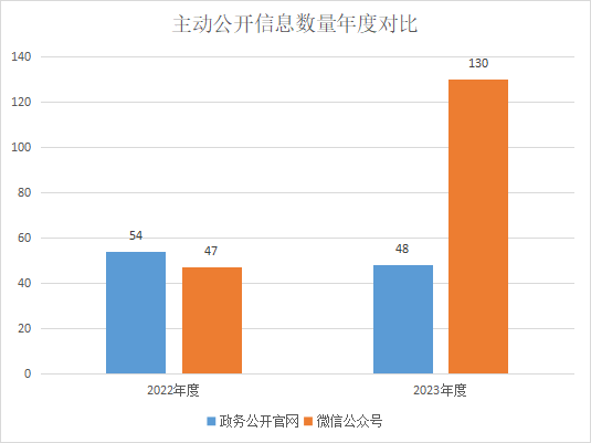 (一)主动公开情况。2023年,共在县政府政务公开官网主动公开48条信息,其中,发布政策法规及相关解读信息8条,办公会议及相关解读信息条,行政执法信息8条,财政信息4条,政务公开培训和工作推进情况4条,稳岗就业信息8条,同时根据实际情况,动态更新了法治建设、人事调动等信息。在“沂源退役军人之家”微信公众号发文130条。