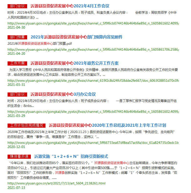 (二)落实上年度政府公开工作要点情况。2021年,沂源县投资促进发展中心按照工作要点要求,及时调整信息公开目录,健全制度机制,加强平台建设,持续推进政务公开工作。