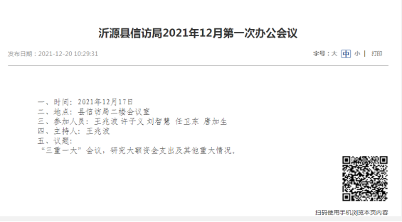 | 标题: | 沂源县信访局2021年政府信息公开工作年度报告 | ||
