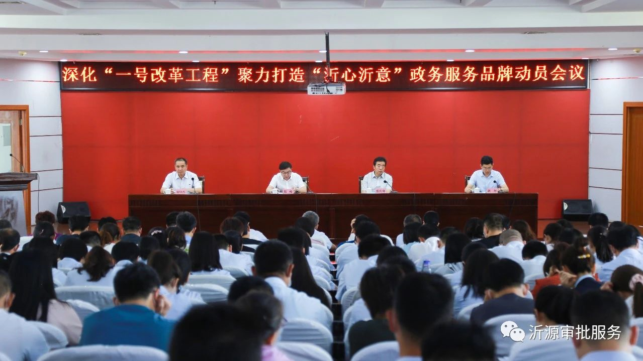 为持续深化“一号改革工程”和“一次办好”改革各项重点任务,高标打造“沂源效率”,全力跑出“沂源速度”,真正叫响“沂心沂意”政务服务品牌,7月4日上午,沂源县行政审批服务局在新城宾馆组织召开深化“一号改革工程”聚力打造“沂心沂意”政务服务品牌动员部署会,局全体工作人员、进驻县政务服务中心各部门单位分管负责人、进驻窗口全体工作人员及各镇(街道)分管领导、便民服务中心主任共300余人参加了会议。县政府、组织部、纪委有关领导出席会议并讲话。
