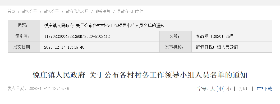 | 标题: | 沂源县悦庄镇人民政府2020年政府信息公开工作年度报告 | ||
