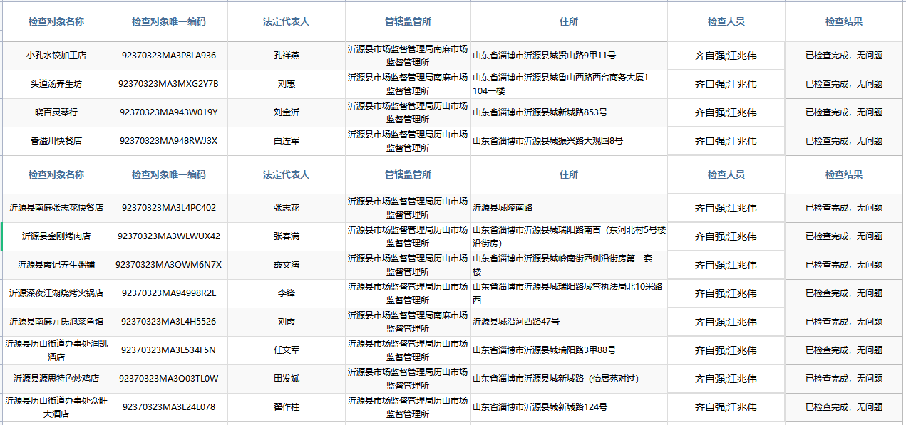 沂源县综合行政执法局2021年“双随机一公开”检查结果公示(三)