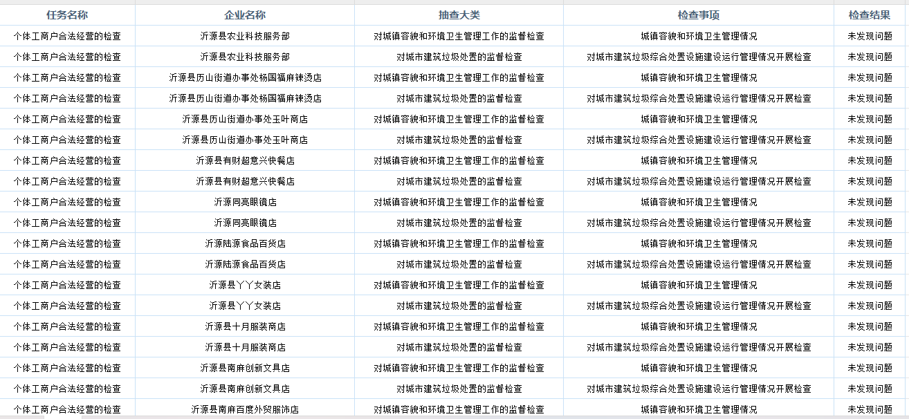 沂源县综合行政执法局2024年“双随机一公开”检查结果公示(六)