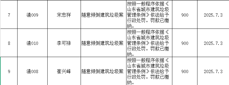 沂源县综合行政执法局2025年第三季度行政执法情况结果公开